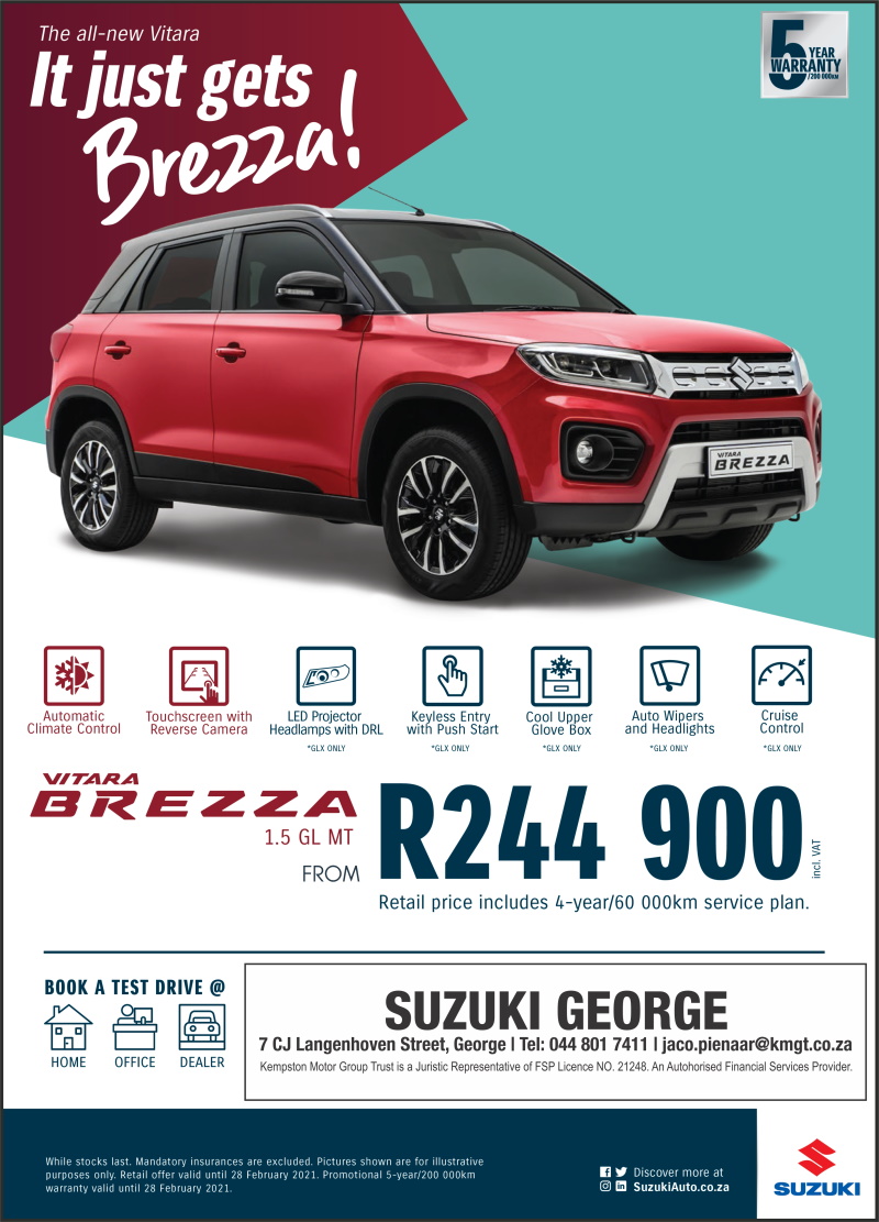 Suzuki Motors SA het pas sy oulike en funky nuweling die “Brezza” virtueel plaaslik bekendgestel. Met ‘n slagspreuk “it can just get Brezza!”, het die uwe maar die petalje so skuins-skuins gade geslaan. So op ‘n prentjie kan ‘n besigheid mos misleidend mooi lyk, net om skewebek te vertoon wanneer jy hom die dag in lewende lywe staan en beloer. Vra maar vir die manne wat op die loop gegaan het oor ‘n sexy gesigboek profielfoto!