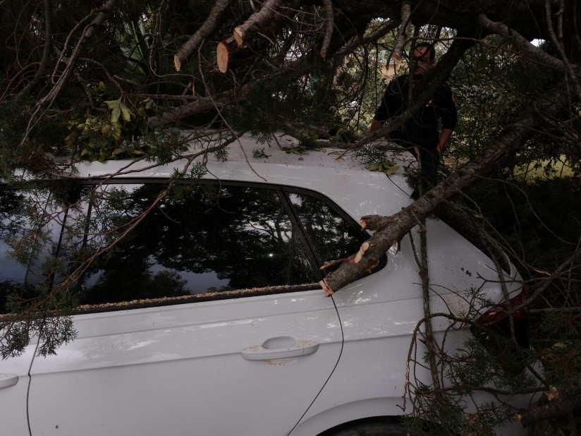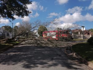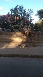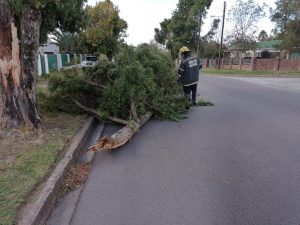 George Fire Brigade together with our Parks section dealt with at least 27 trees on Monday which had either fallen over or branches that had broken off and had to be removed,  following the high winds At least three trees fell onto parked cars and fortunately, no injuries were reported. In several cases, the fallen trees or branches had blocked roads or sidewalks and these needed priority clearing.  Emergency Services also attended to a portion of the Rosemoor Stadium wall in Miller Street that blew over on Monday. Repairs will be done as soon as is possible.