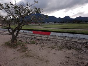 Part of the Rosemoor Stadium wall in Miller Street blew over on Monday. The George Municipality will fix the wall during this week.