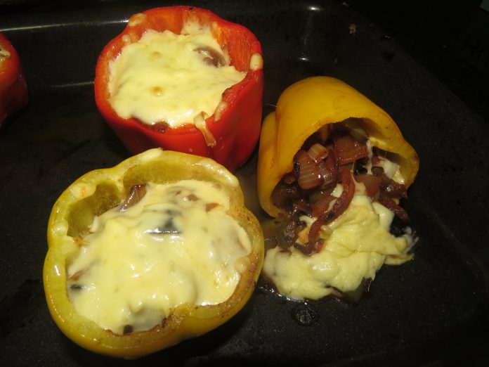 Sny die soetrissies bo oop en haal pitte uit. Vul nou met vleis, dan uie en dan Mozzarella kaas in lae en herhaal. Bak in oond teen 200*C vir 30min. Smaaklike ete!