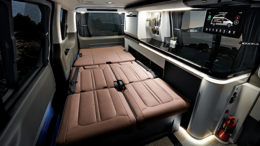 In 2021 het Hyundai die futuristiese Staria bekend gestel. Dis ‘n uitgebreide model-reeks met alles van ‘n luukse bus tot ‘n paneelwa. Dit is dus natuurlik met die ontploffing in #vanlife dat die opsie van ‘n motorwoonwa ook ondersoek is. Die enigste kompetisie in die segment is die VW California en die luukse Staria verkoop vir heelwat goedkoper as die luukse Caravelle. So is die Staria Camper is gebore.