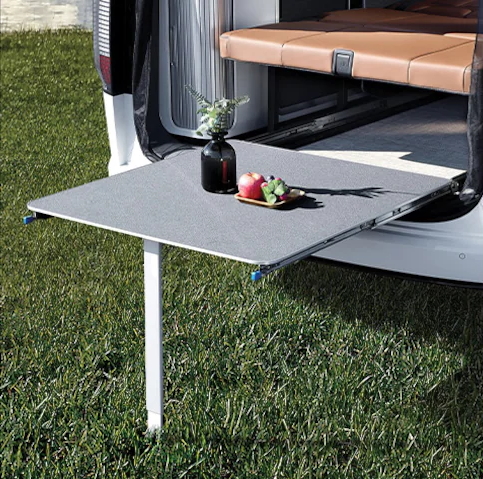 Die 2023 Hyundai Staria Lounge Camper, as hy by sy doopname genoem word, bied sit- en slaap plek vir 4 mense. Die agtersitplek vou plat om ‘n bed te vorm en die dak vou elektronies op sodat mens regop in die bussie kan staan. Vanaand met slaaptyd vou ‘n basis in die voudak af, wat slaapplek bied vir nog twee kleiner mense of kinders. Daar is ‘n 36-liter yskas, ‘n stort en ja, ook ‘n wasbak! Water word aanboord voorsien met die Staria wat toegerus is met twee tenks van 40L en 70L. ‘n Oulike tafel kan agter uit vou vir daai piekniek langs die water en as jy bekommerd is of die battery gaan hou, die Camper kan ook aan ‘n eksterne kragbron gekoppel word. As ESKOM werk.