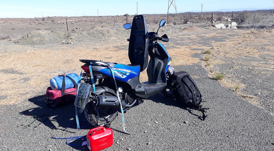 Die SYM draf gemiddeld so 80km/h op ‘n goeie grondpad en anderkant 100km/h op teer, maar dit was nie die punt nie. Hierdie was ‘n reis. Die enigste nadele wat Christo ondervind het was die klein brandstof tenk van 5L, maar dan het die SYM met 140kg (bagasie en ryer) op sy rug steeds 25km/L gekry. Dus het die 5L wat Christo ekstra saam gery het gesorg vir ‘n totale reikafstand van by die 250km. Die ander probleem was dat Christo elke keer die bagasie moes aflaai om by die tenk onder die sitplek uit te kom, maar dan, hoeveel bagasie kan daar nou op ‘n soeter wees?