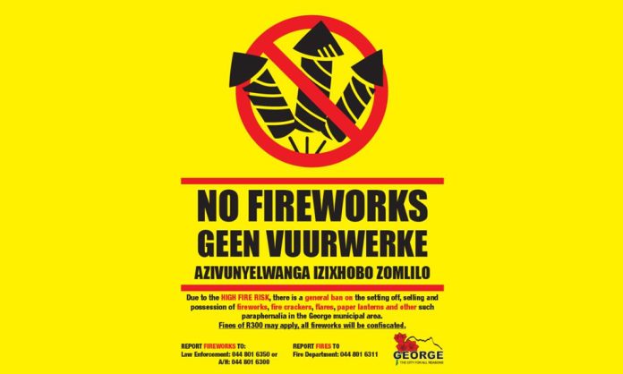 Due to its associated fire risks the private use of fireworks, pyrotechnics and crackers are not allowed anywhere in the George Municipal Area at any time.