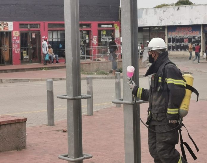 | In addition to firefighting duties, firefighters do Covid-19 frontline work including disinfecting high risk areas such as the GO GEORGE hub, taxi ranks and municipal buildings linked to staff that have tested positive or have been exposed to positive Covid-19 cases. |