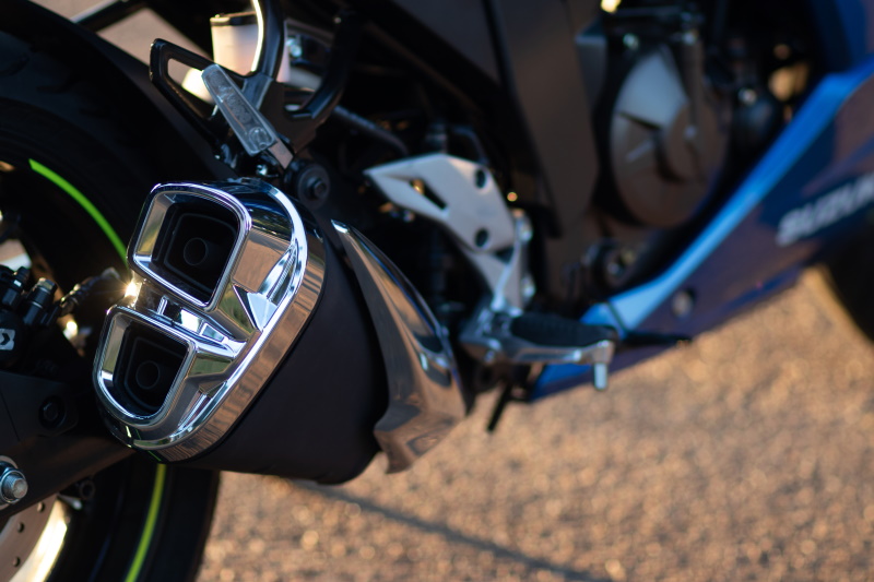 As far as styling goes, the new bike looks like Suzuki has moved the whole fairing forward over the front wheel. With the larger headlight, the bike also looks more aggressive. According to Suzuki they have stiffened up the suspension and issued the bike with slightly wider tyres and a larger front disk. ABS is still standard on the Gixxer. The bike comes with an unsightly hugger over the rear wheel, but I am sure Suzuki will remove it for you at no extra cost. I am also not too fond of the chrome exhaust tips. I would have opted for a brushed aluminium look, but now I am just nit-picking.